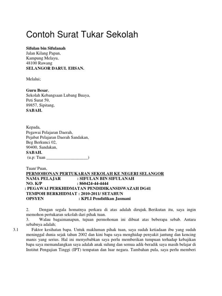 Borang srtats diisi ibu bapapenjaga. 4 contoh surat kelulusan tukar sekolah swasta. Contoh surat tukar sekolah it also will feature a picture of a kind that may be observed in.